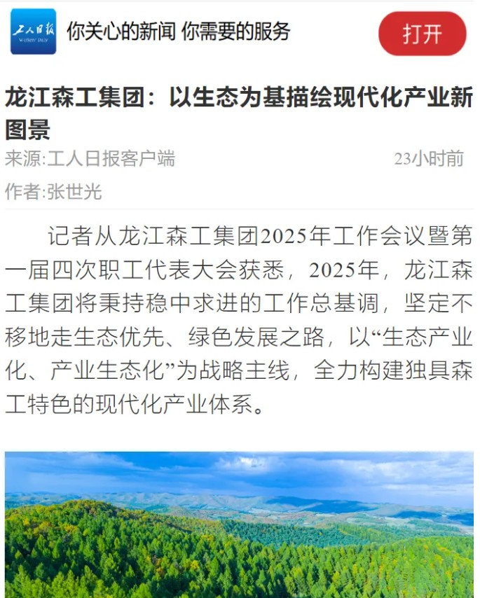 【媒體關(guān)注】工人日?qǐng)?bào)|龍江森工集團(tuán):以生態(tài)為基描繪現(xiàn)代化產(chǎn)業(yè)新圖景